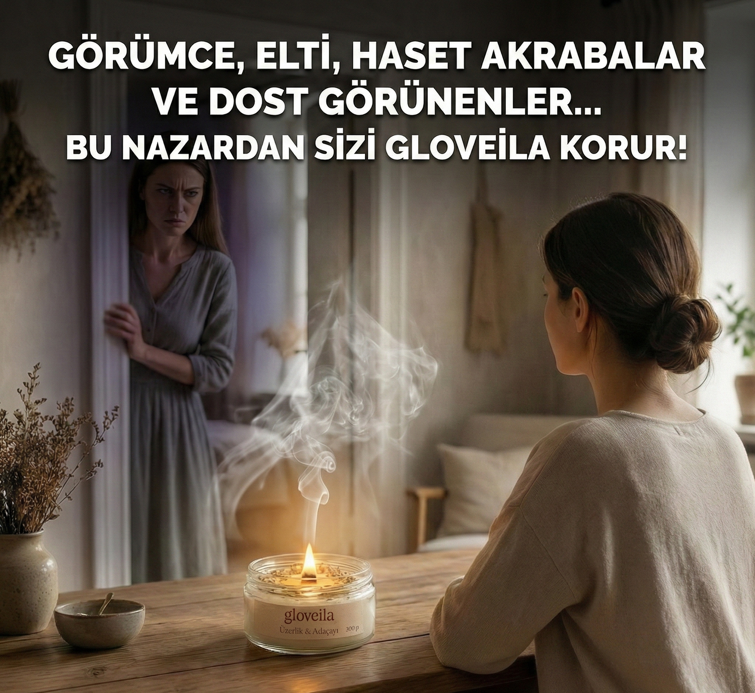 Nazarın yarattığı o anlaşılmaz ağırlık bazen kelimelerle anlatılamaz, sadece hissedilir. Üzerlik ve adaçayının ince aroması ortama yayıldıkça bu görünmez yoğunluk dağılır, alan yumuşar ve yerini sakin bir ferahlık alır. Işığıyla değil hissiyle etkileyen bu mum, bulunduğun ortamı daha dingin ve huzurlu bir atmosfere dönüştürür.